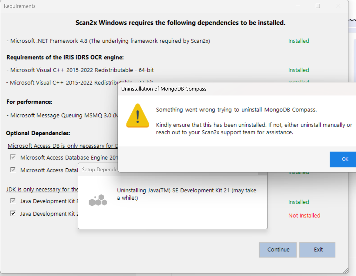 4.If the error pops up again - access your Setup folder - found within your Scan2x folder. So if your Scan2x folder is C:\Program Files (x86)\Scan2x, then the Setup folder can be found within. The path in this case would be C:\Program Files (x86)\Scan2x\Setup. If any of these files exist - delete them: