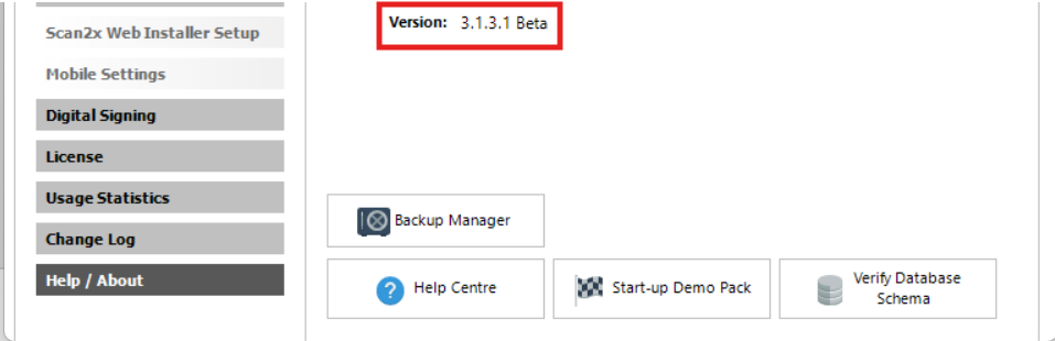 2.An administrative user can click on Admin Panel, navigate to the Help / About tab and see the Scan2x version. .png)