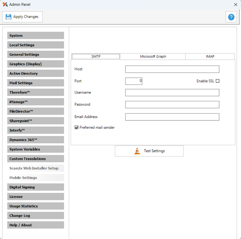 Use the Test SMTP Settings button to ensure that your Scan2x settings work correctly with your chosen SMTP server.