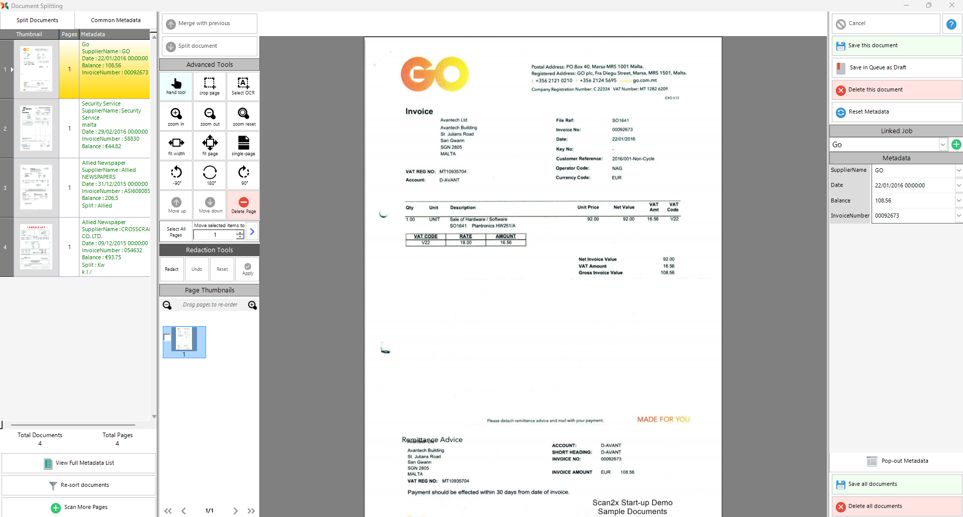 When a job’s Splitting Conditions are successful, the document is split and considered to have been identified as a document as defined by that job.