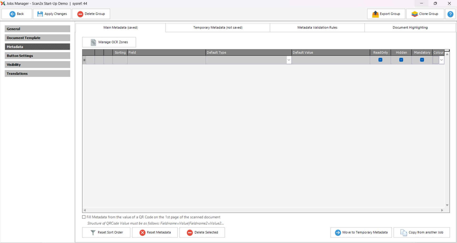 This metadata can then be reset, moved, or copied from another job as seen at the bottom of the screenshot below.