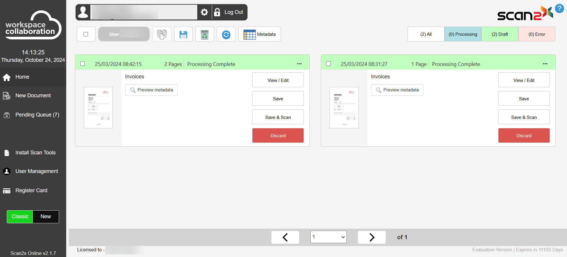 Once a document is scanned or uploaded, the scan preview will appear in the Pending Queue tab, as can be seen in the screenshot below.