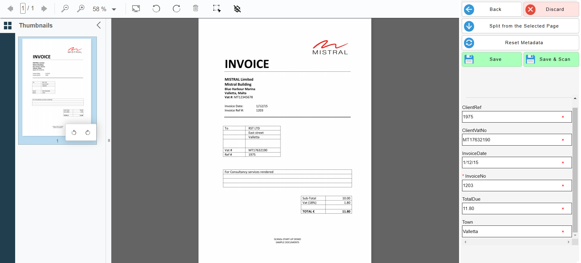 •To the right of the screen, the user is shown the metadata that the system has derived from the document. If the metadata is incorrect, the user has the option to edit it.