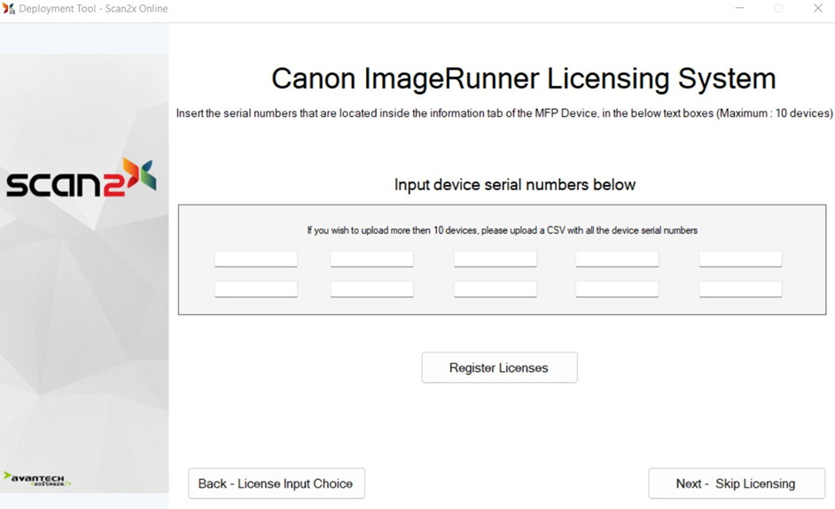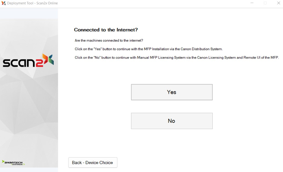 If your devices do NOT have internet access, then each device you deploy Scan2x to will not be able to use Canon’s deployment system.