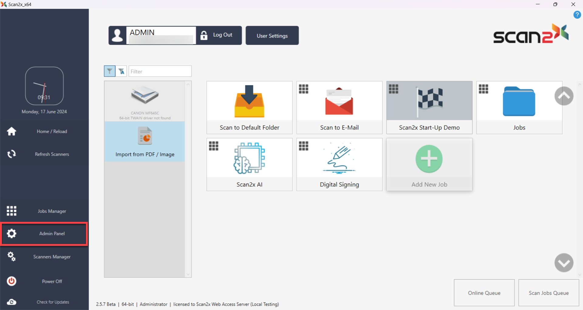 ØLogin to Scan2x and click on the Admin Panel button from the left-hand side of the home screen.