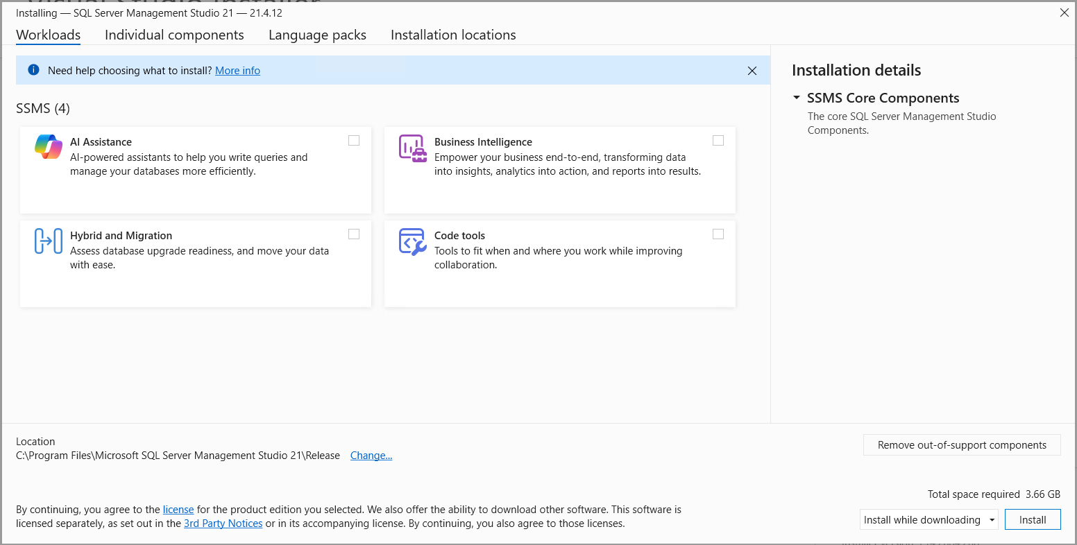 ØOnce SQL Express is installed, you can also click Install SSMS.