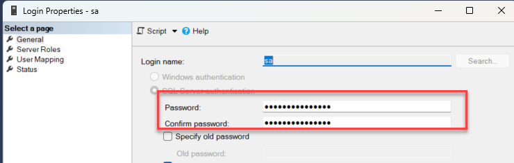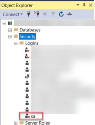 ❖First, if needed, change the password of the login user 'sa' to one that you know, by: - Going into SSMS