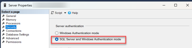 - Select 'SQL Server and Windows Authentication Mode' - Click OK