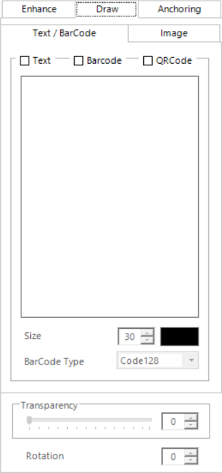 Text / BarCode Tab