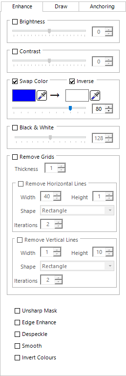 The next five checkboxes enable you to apply various image filters that can help with specific document types. These are explained briefly below.
