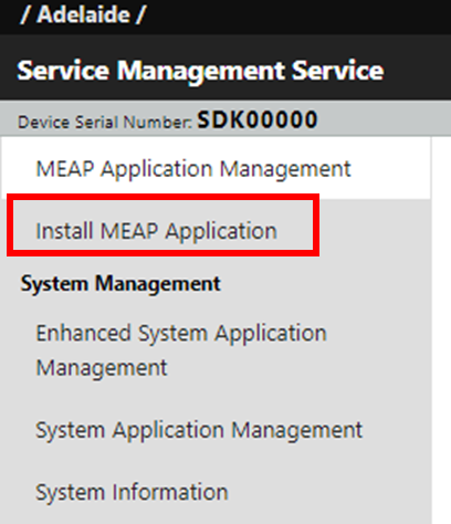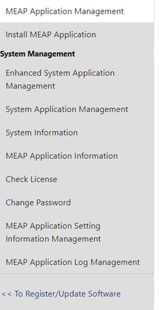 On the left-hand side of the web page, you will find a context menu – Click on "Install MEAP Application".