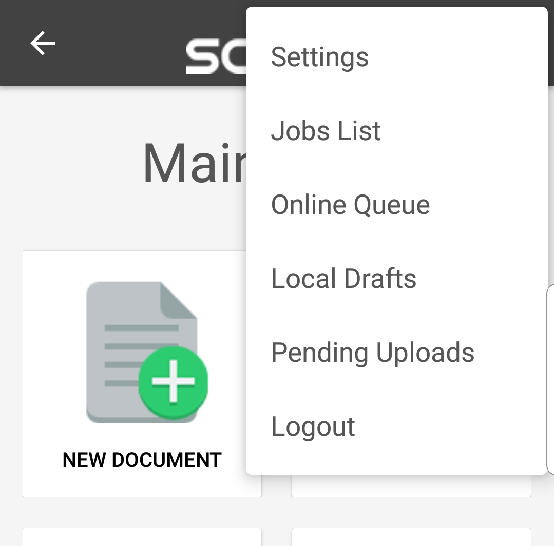•Local Drafts: Opens the Local Drafts where documents that are currently being worked on and not yet sent for upload are displayed.