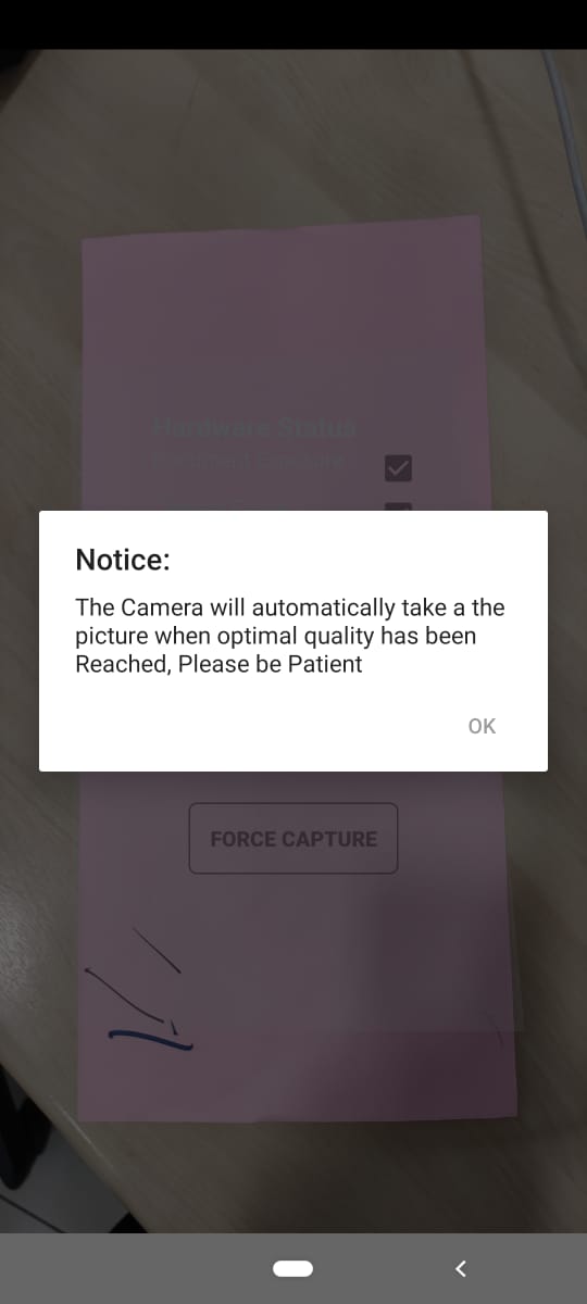 When the user chooses the 'Document scan' option, the app immediately shows a message with instructions for the user.