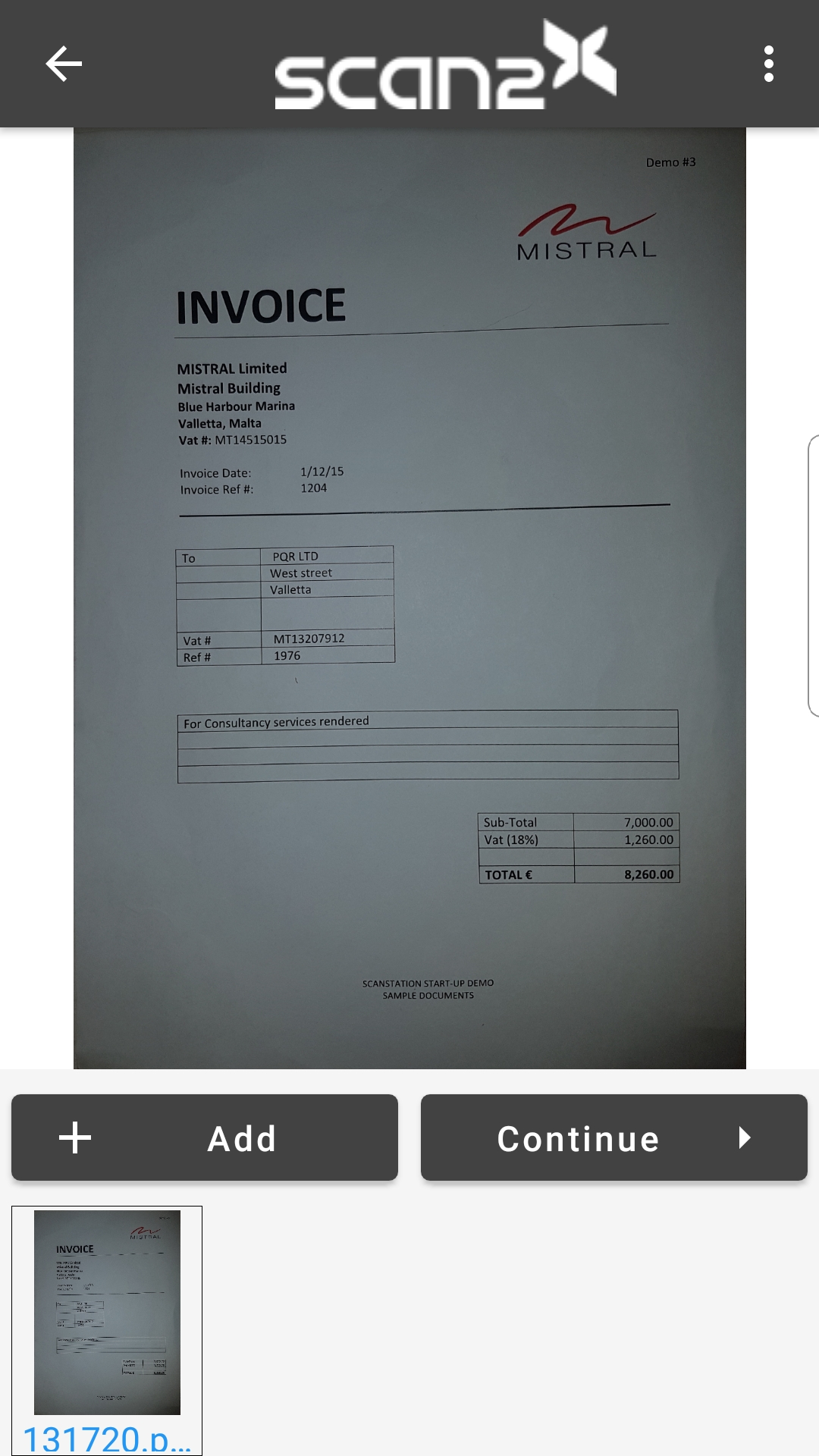 Once the document has completed scanning or the user clicks the 'Force Capture' option to finish scanning, the document is then shown like in the screenshot below.