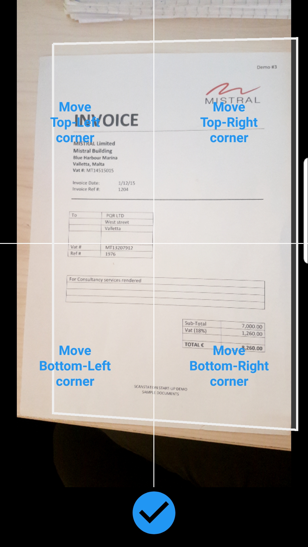 The user has the option to either allow the sofrware to recognise the document edges by itself or to crop the document manually as seen in the screenshot below.