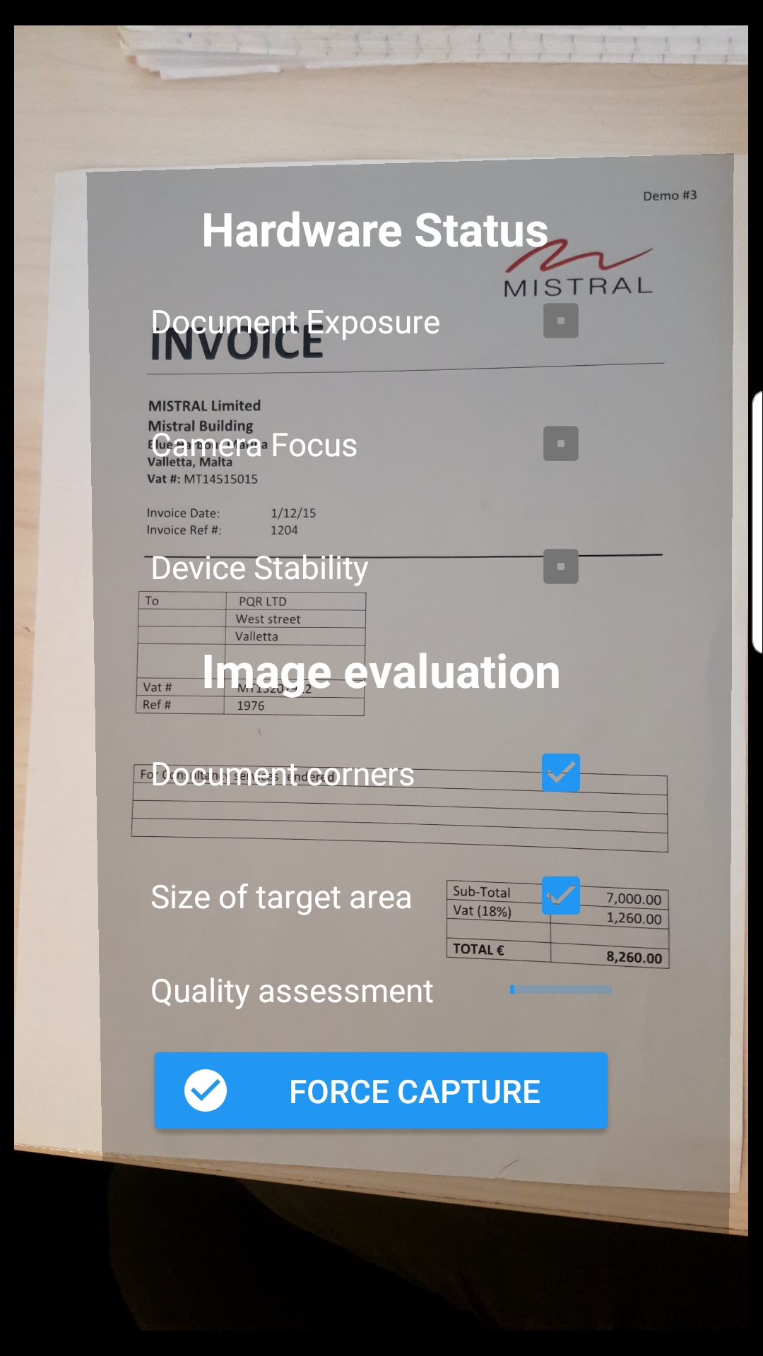 •Document Scan: this feature would open the camera using the following SDK “IRIS Mobile OCR SDK” to detect document in front of the camera. For more information about IRIS Mobile OCR SDK, please click the following link for more details.