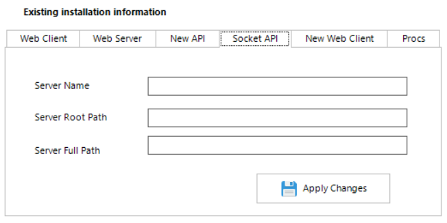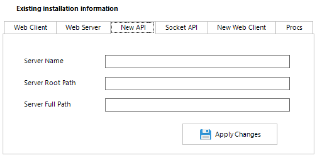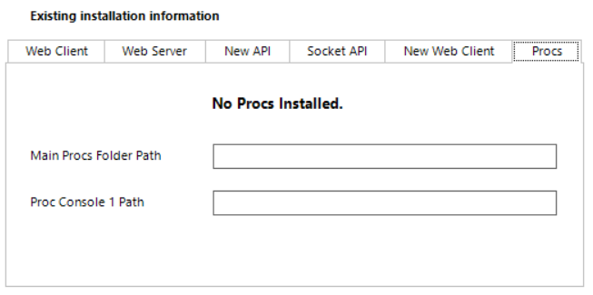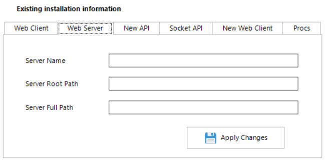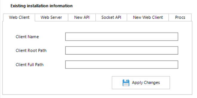 The six tabs listed under 'Existing installation information' header, shows where each website is located in the file system.