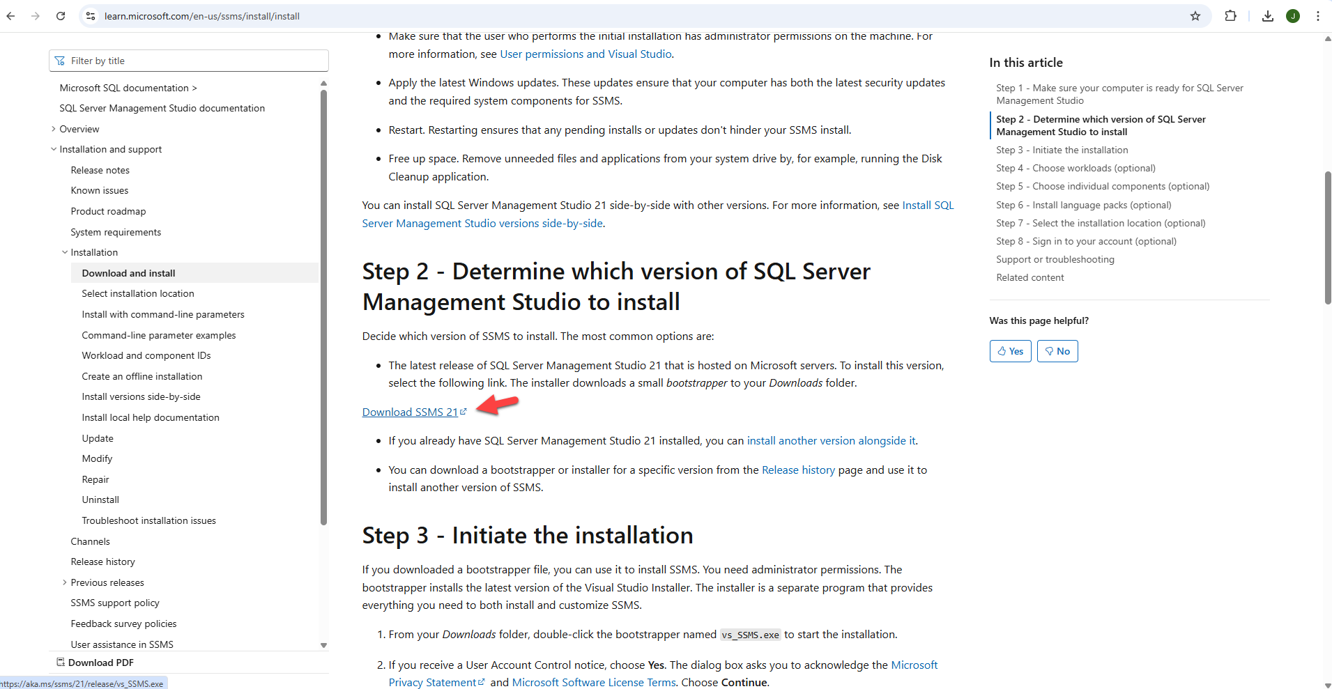 ØYou will be redirected to the Microsoft site where you can download SSMS by hitting the link shown in the image below.