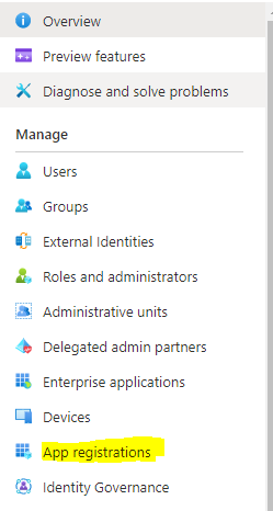 Navigate to App Registrations from the left-hand side options.