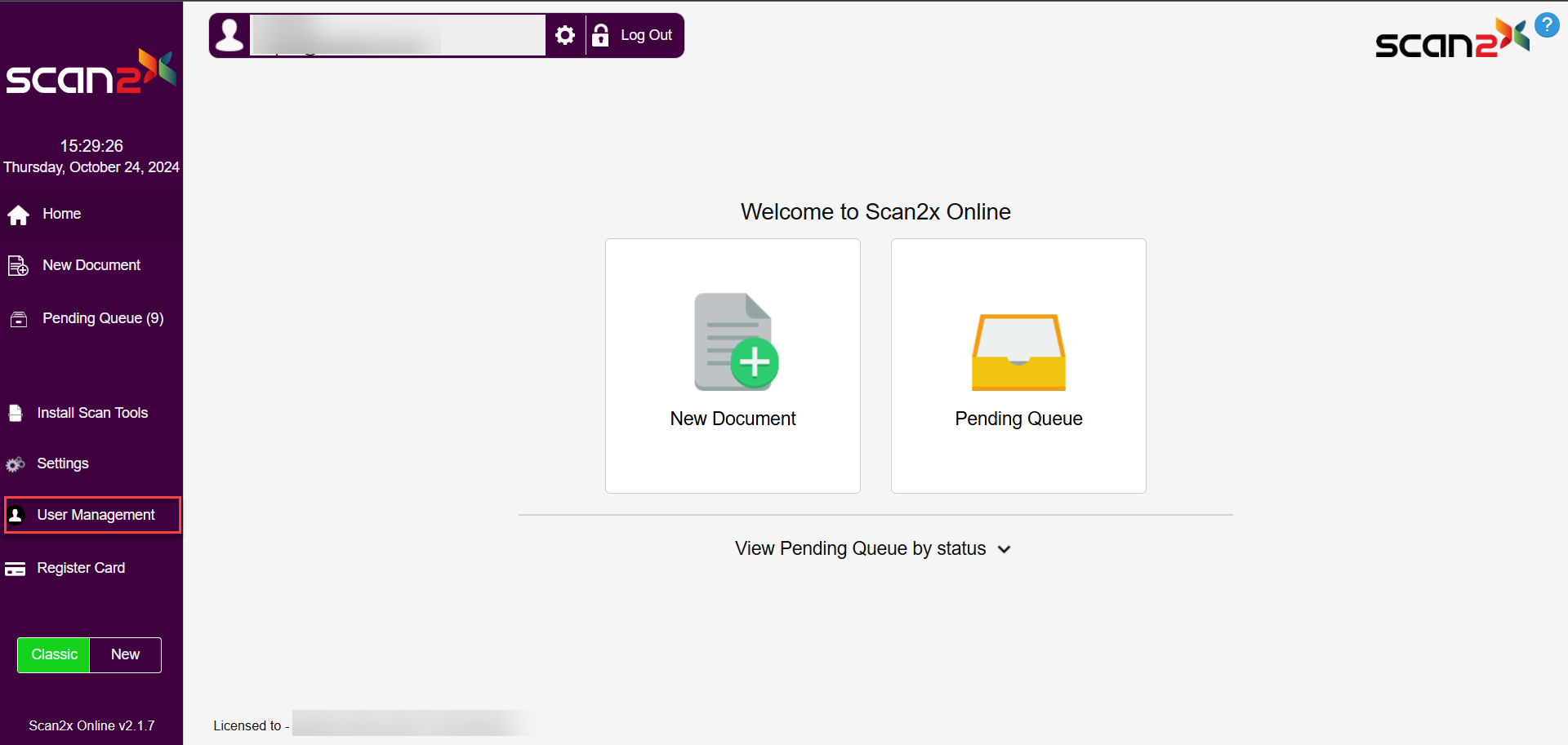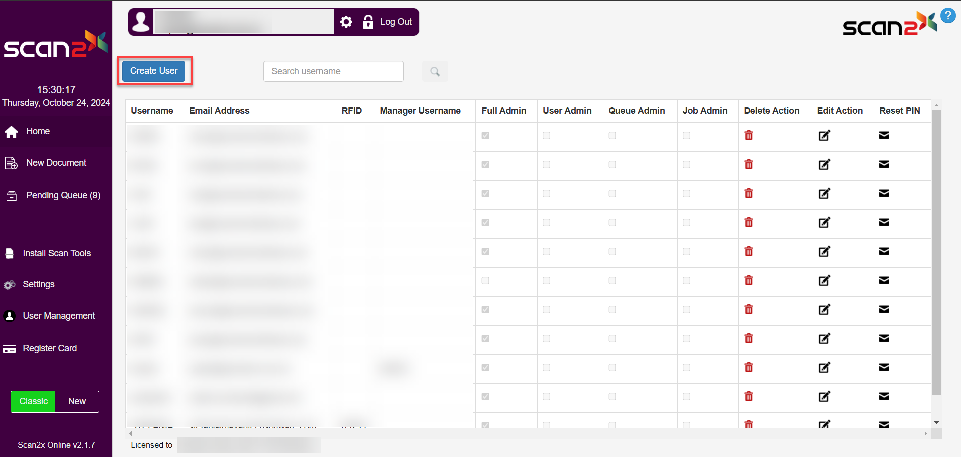 To create users on Scan2x Web Access, click the User Management button.