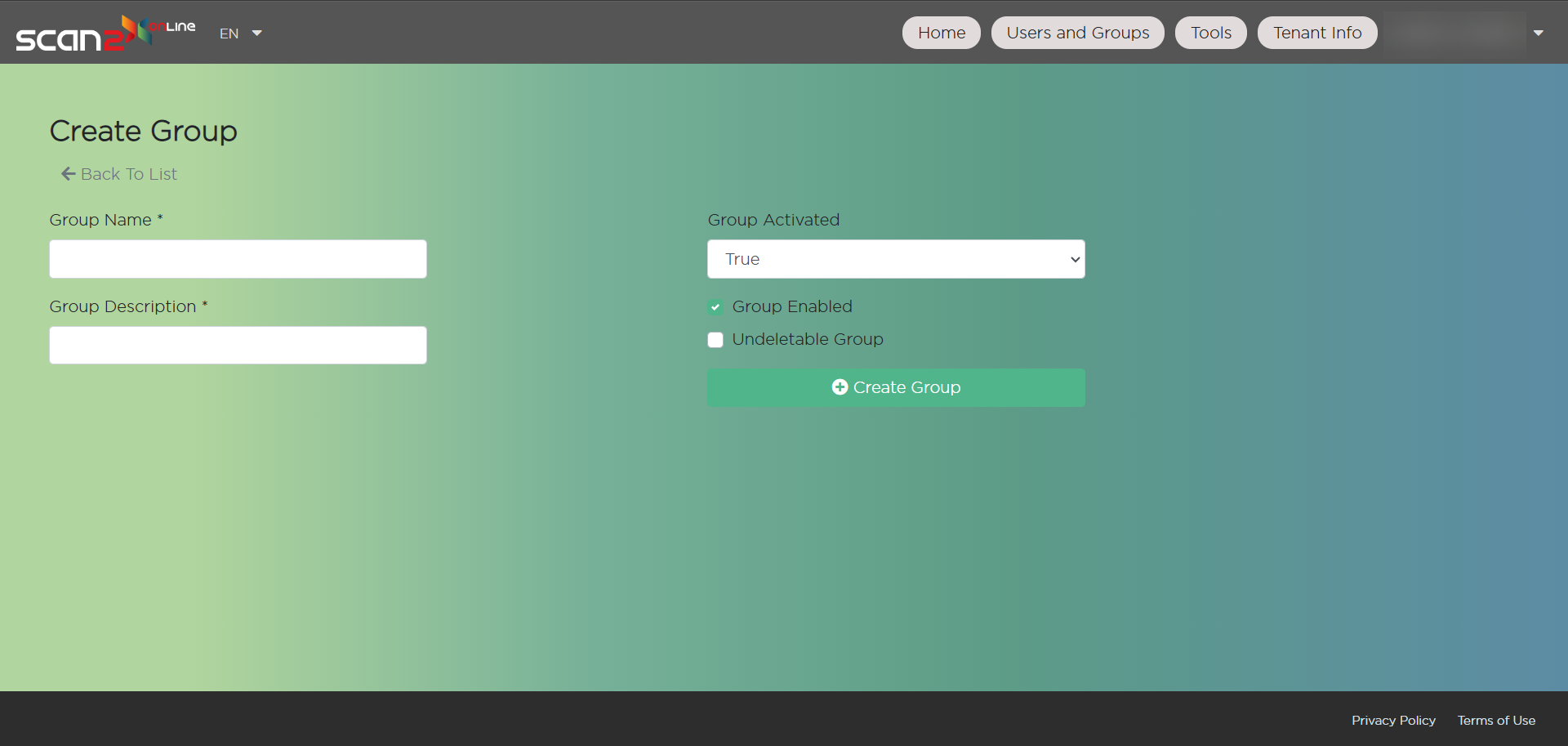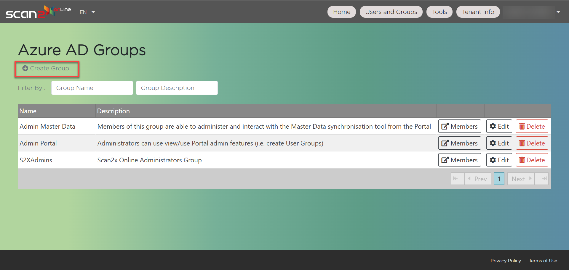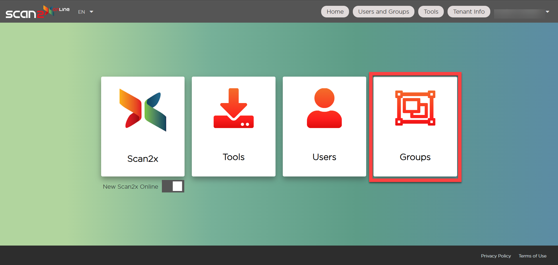 To create users on your Scan2x Online tenant, click the Users button.