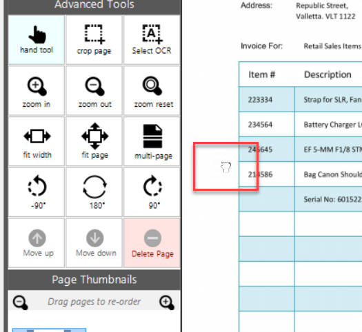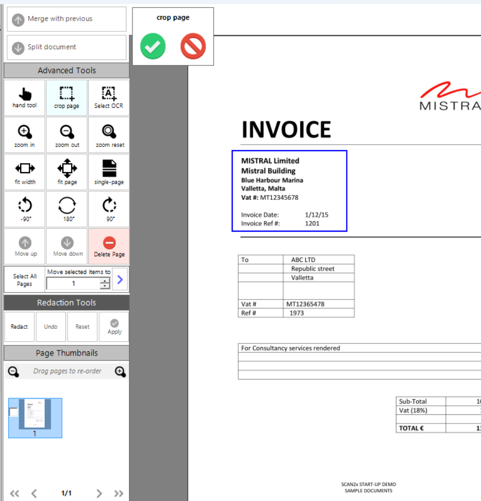 •Crop Page - allows the user to crop the page of the document scanned