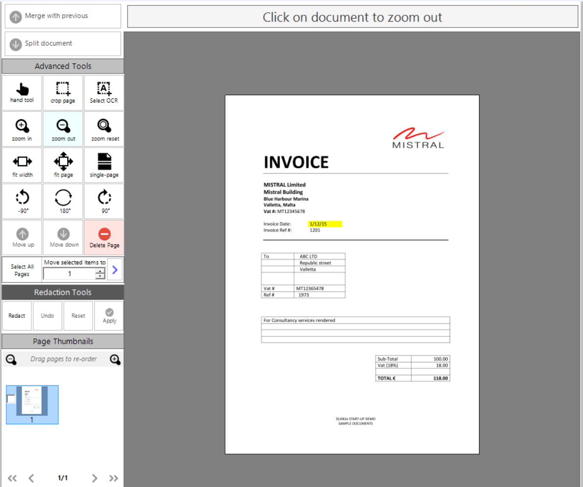 •Zoom In - allows the user to zoom in to the document