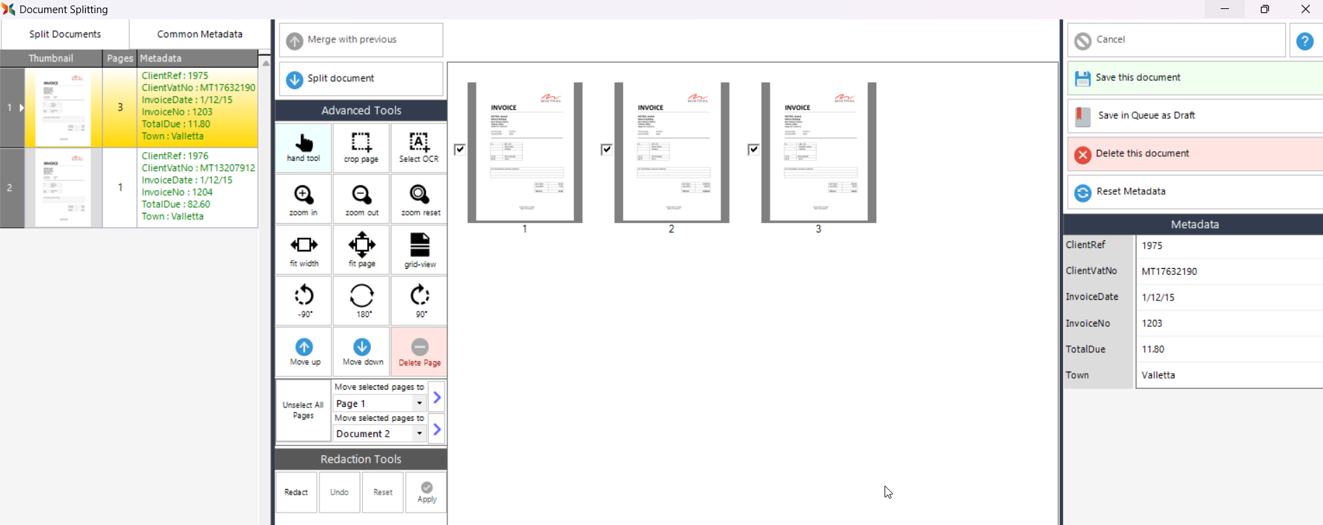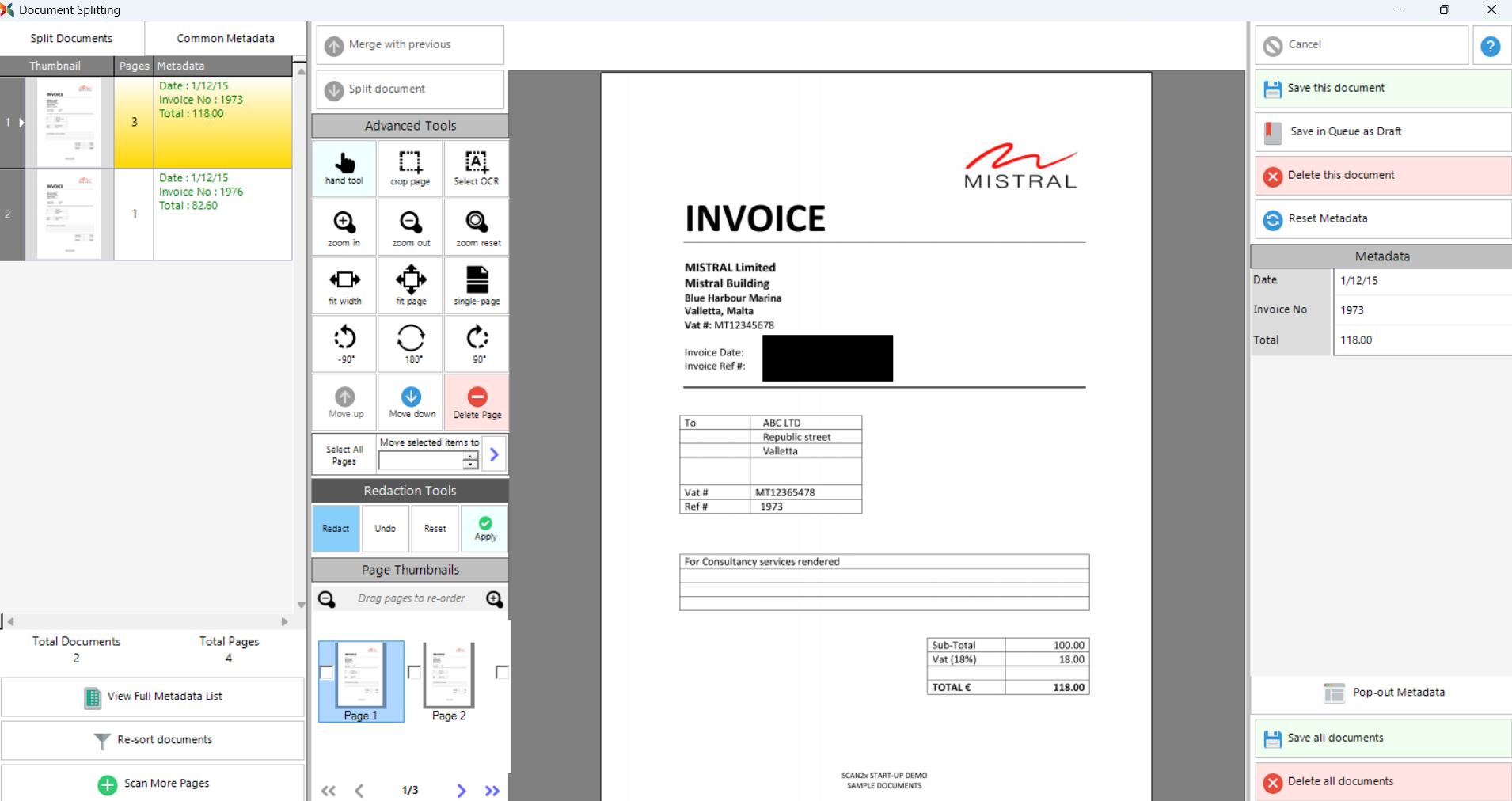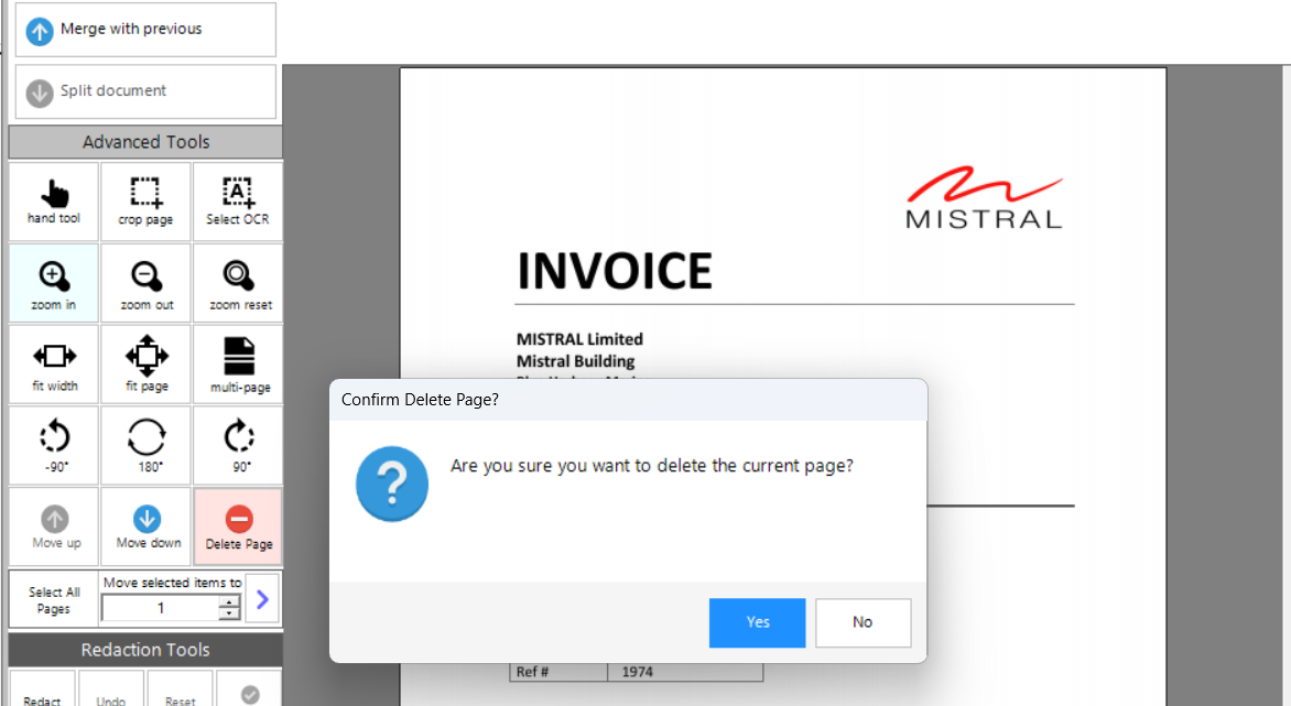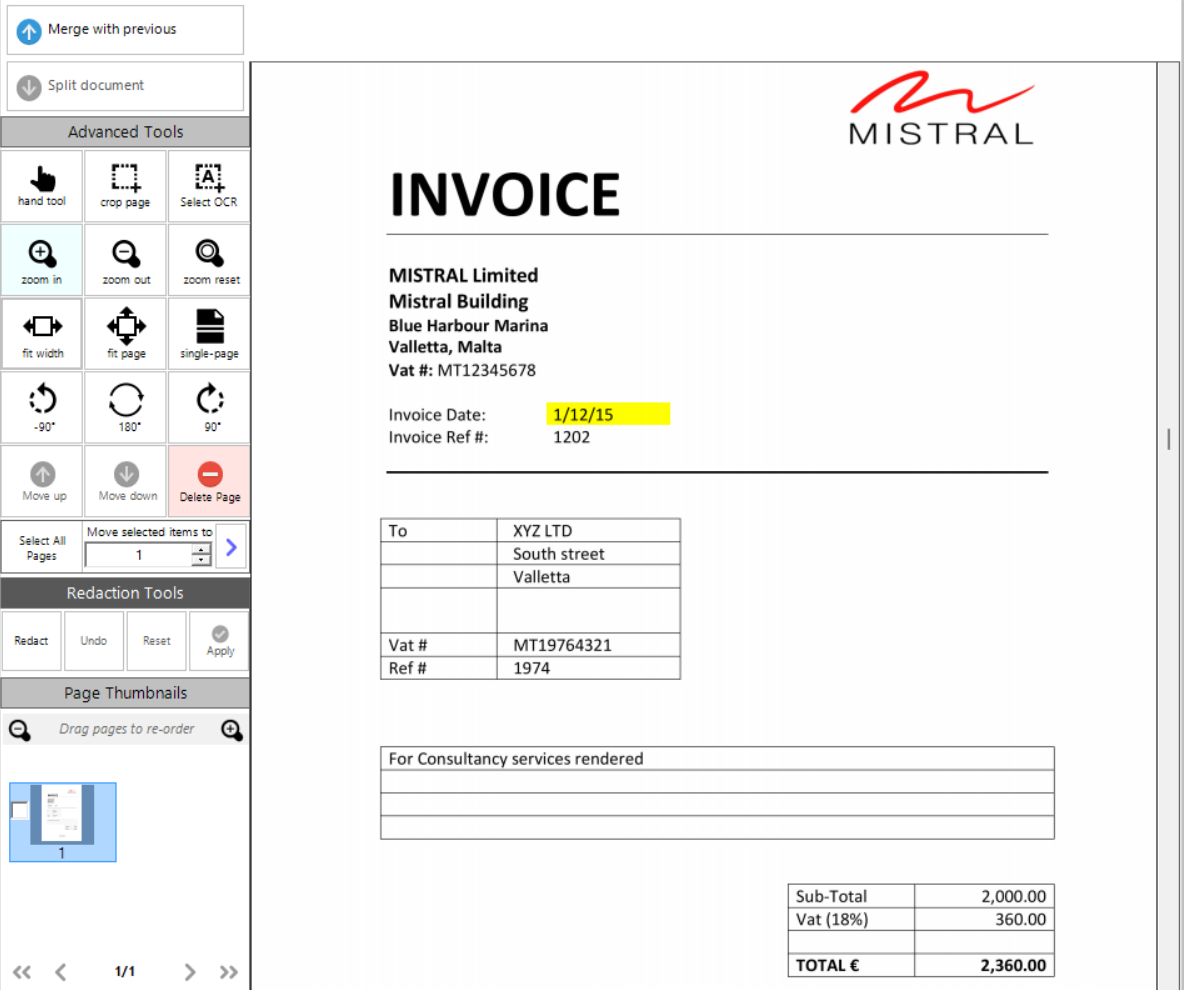 •Redact - this option allows the users to redact parts of the document before saving.