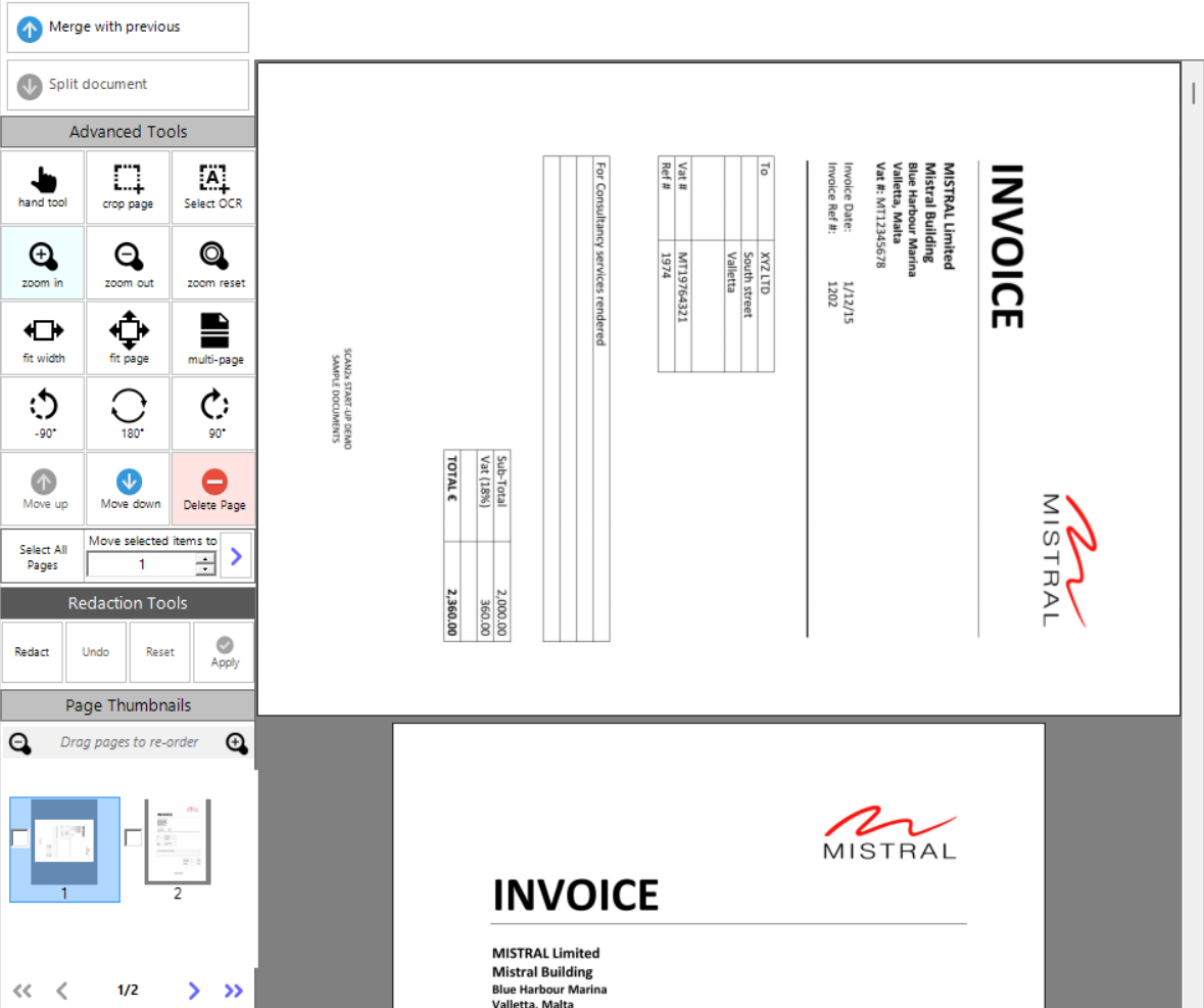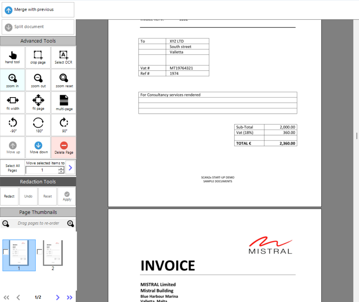 •Multi-page / Grid-view / Single-page button (please note Scan2x will use the last setting used as a default for the job. I.e., if a user finishes scanning with the option left as Grid-view, then the user the next day when scanning will see documents in Grid-view mode)