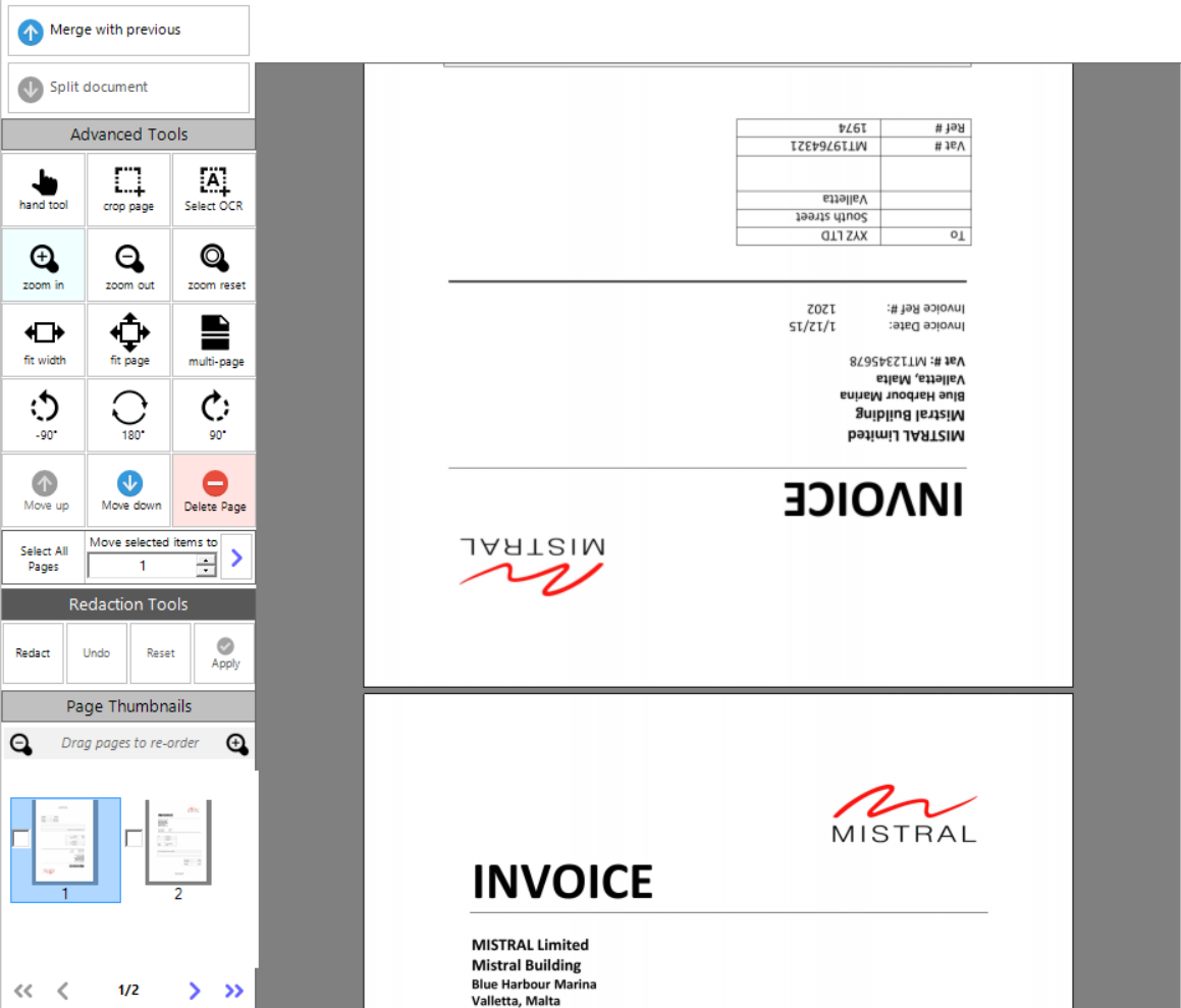 •Rotate 180 degrees - rotates a selected page/s 180 degrees