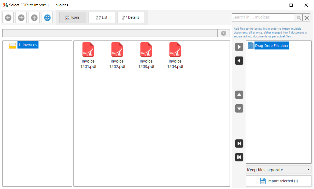 The Scan2x system also has the ability for a person to drag-drop a file from one's desktop to the import file browser as shown in the screenshot below.