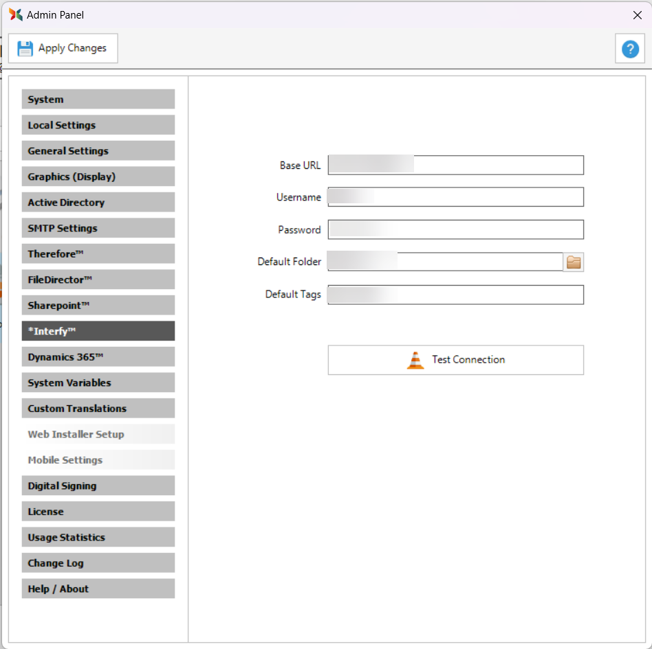 •Test Connection - once the Base URL, Username and Password are input, the administrator can click Test Connection to make sure Scan2x has connected to the URL accordingly.