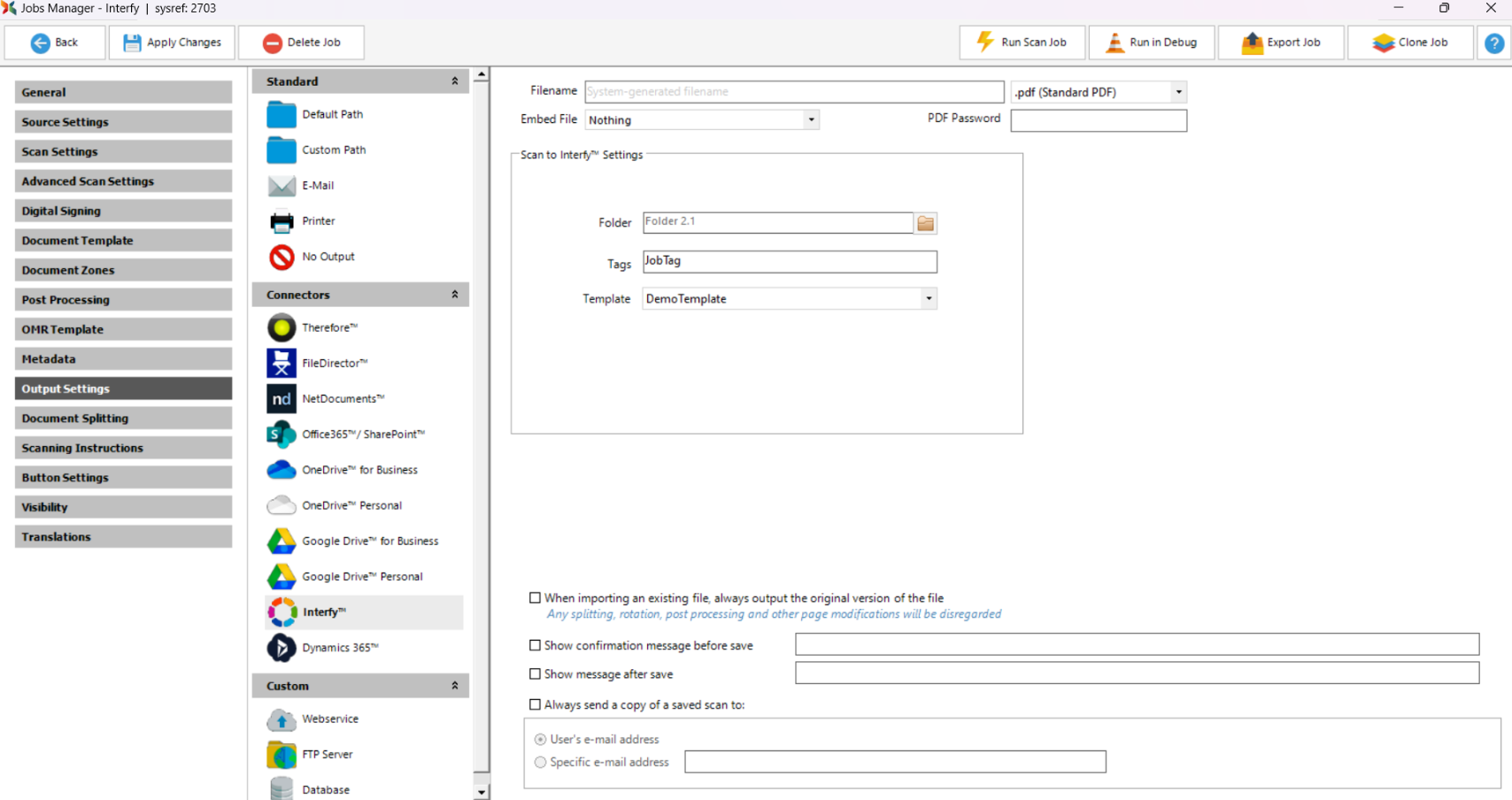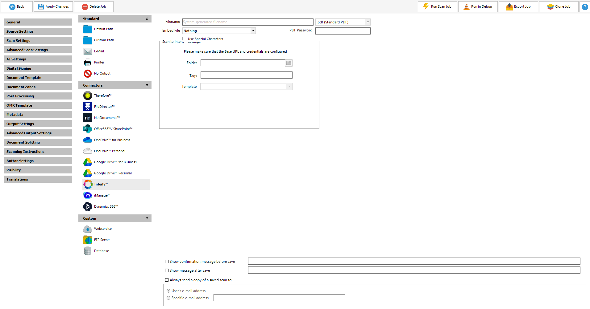 •Folder - Select the folder you would like to save the document into. Kindly note the default folder set from the Admin Panel Interfy™ tab will automatically appear but this can be changed during the job configuration by the administrator.