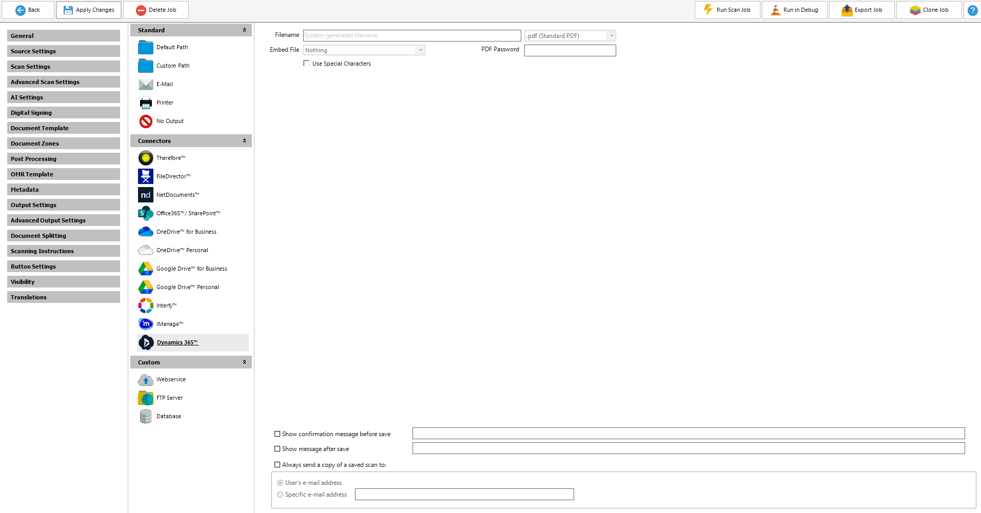 Navigation: Scan2x Administrator's Guide > Scan2x Home Screen > Jobs Manager > Scan Job Configuration > Output Settings Options >