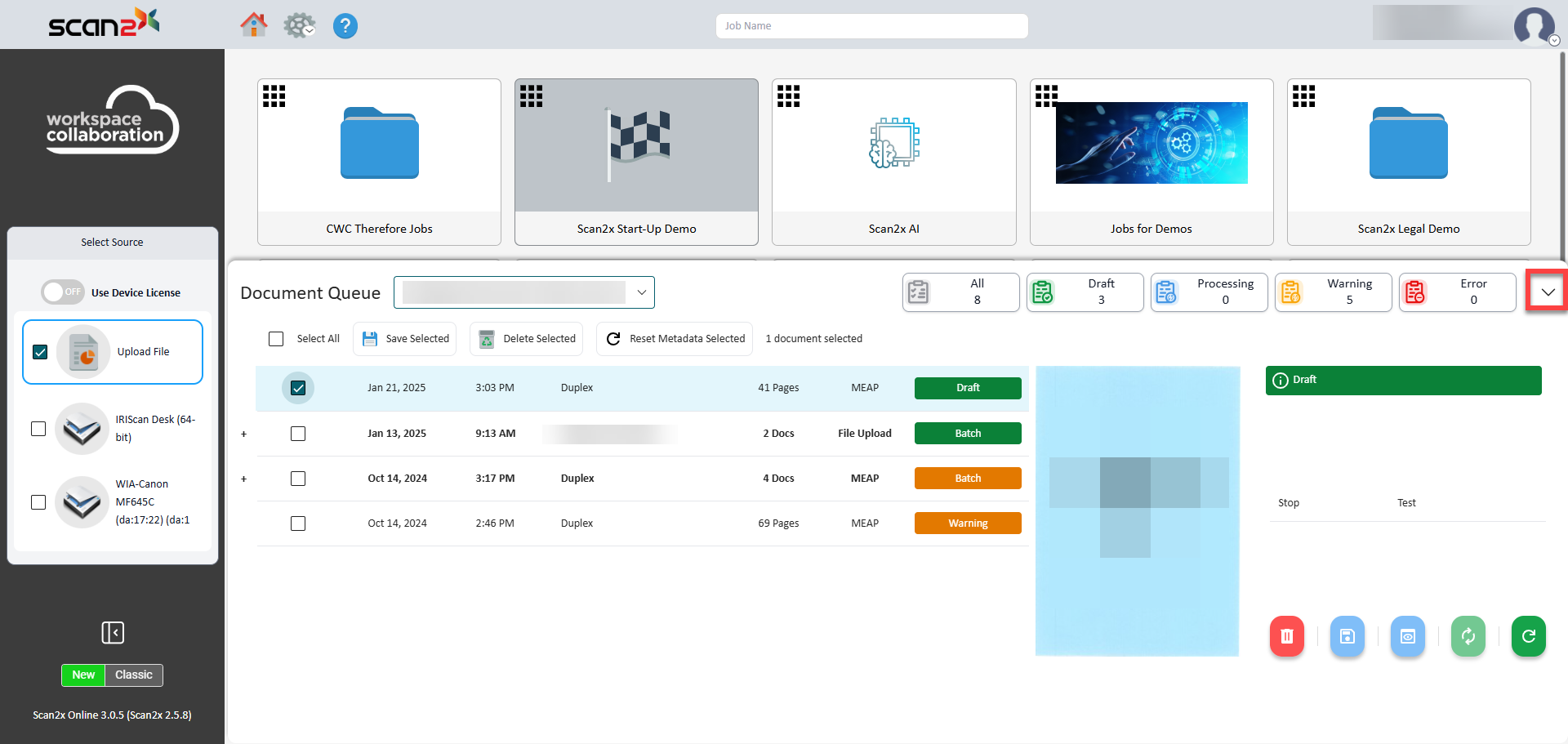 •One can see the relevant metadata/information by selecting a document or batch, this will be shown in the section on the right-hand side near the document preview.