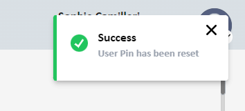 An administrator can also reset their PIN or another user's PIN which will be sent to their email that is in the system.