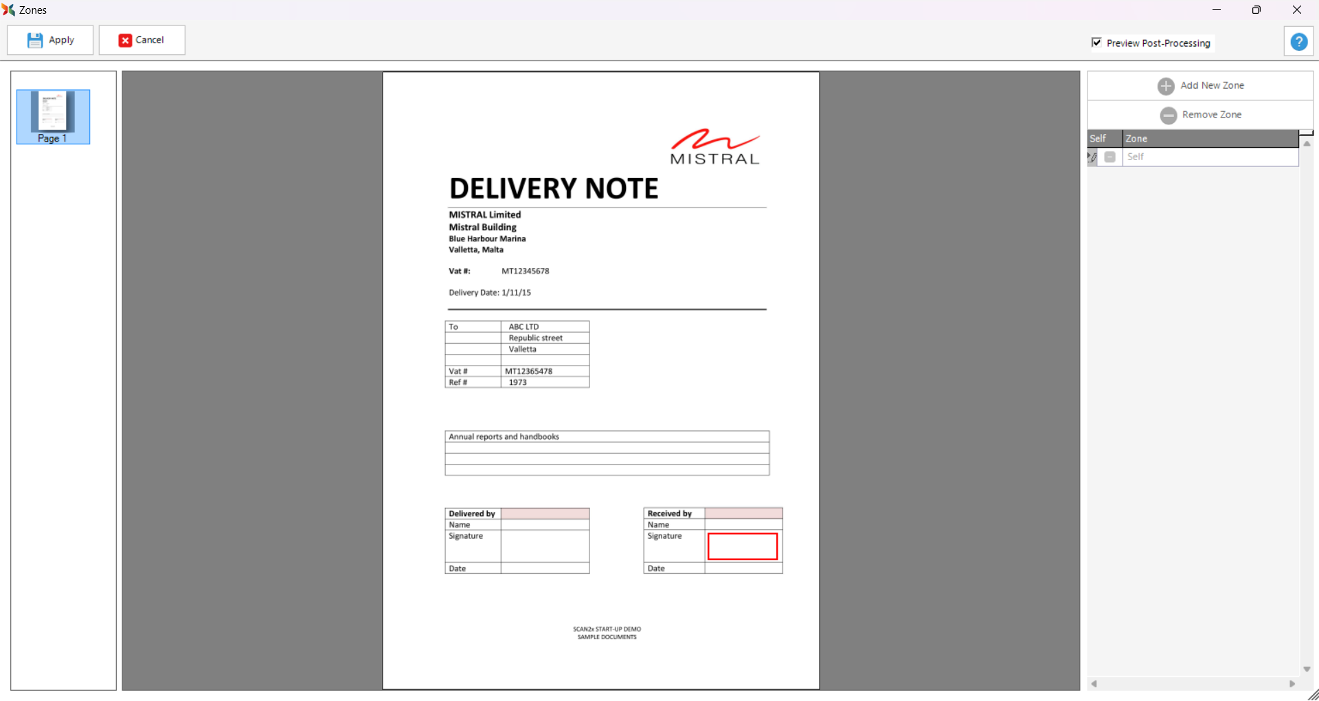 Once the zones have been drawn accordingly on the document, click Apply and Apply Changes to save the configuration.