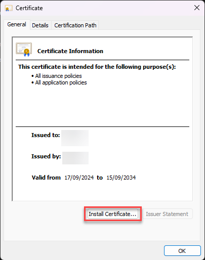 Click the Install Certificate button