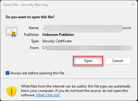 From the KIR folder (sent to you by the respective organisation), click on the file ca.crt file.