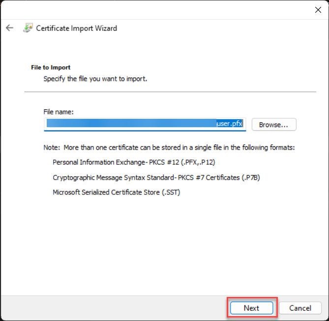 Then proceed to open the user.pfx file.