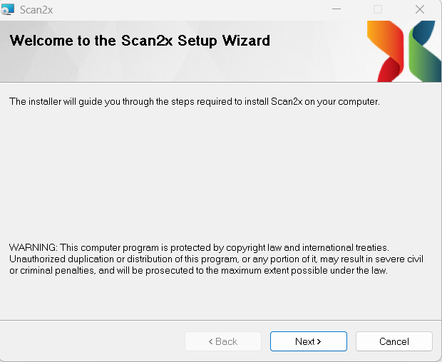 ØAfter this follow the Scan2x Setup Wizard by clicking Next.