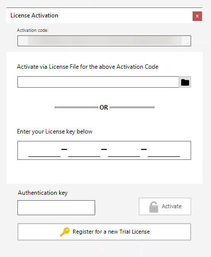ØRegister for a new Trial licence or input your existing Licence key and Authentication key.