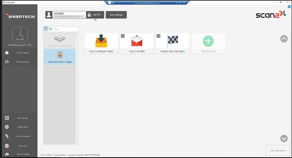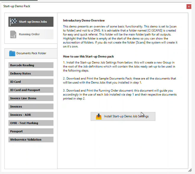 ØIf you wish, you can install our Scan2x Start-up Demo Jobs as an introduction to the basic functionality that Scan2x can do.