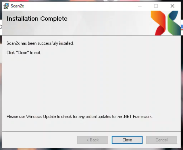 Make sure the .NET Framework is updated. If you do not do this at this stage, you will later be asked by Scan2x to update the .NET Framework when Scan2x will show that updates are available after installation is complete.