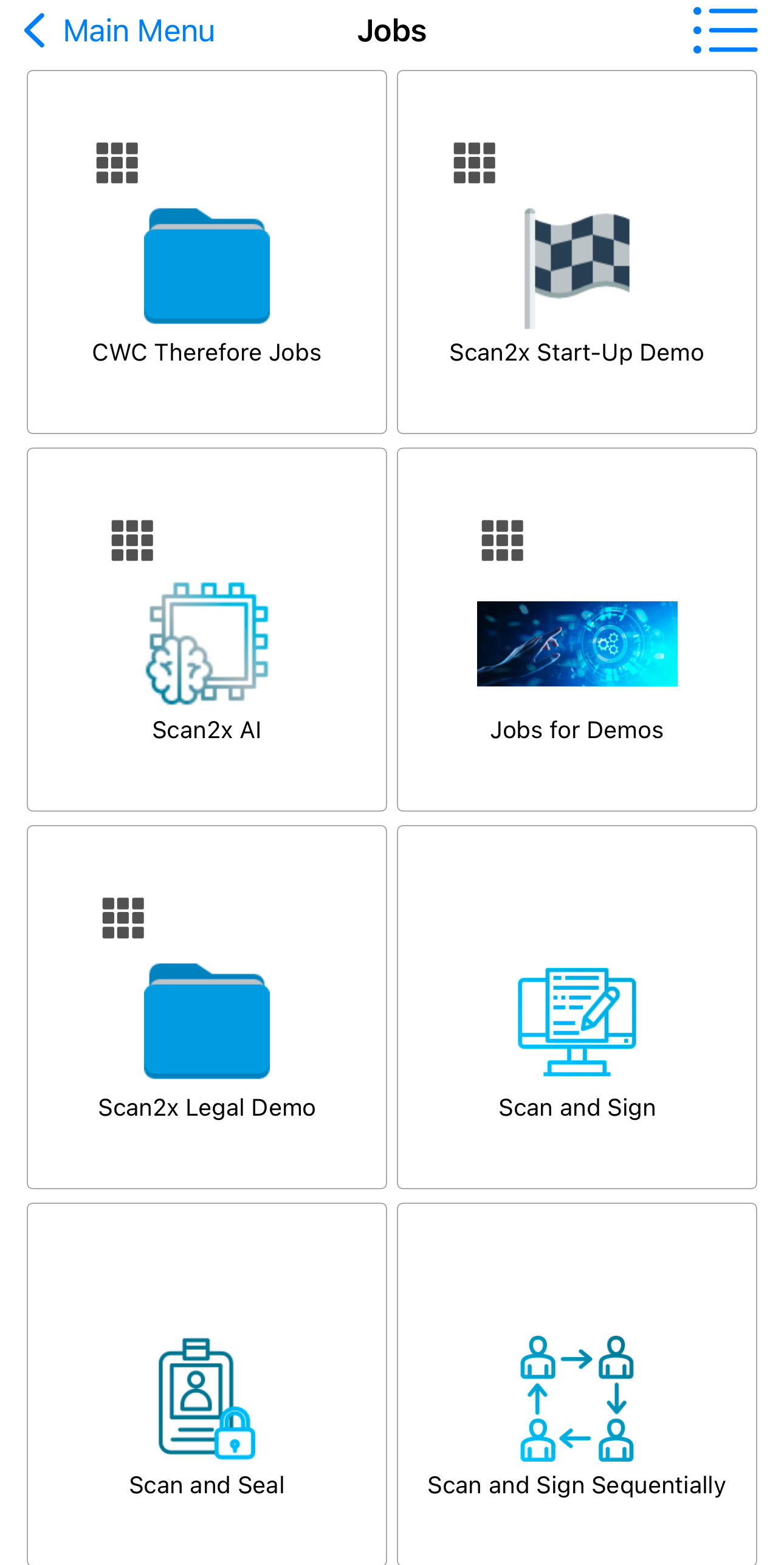This feature allows the user to start the process to upload a document using the different jobs that they have access to.