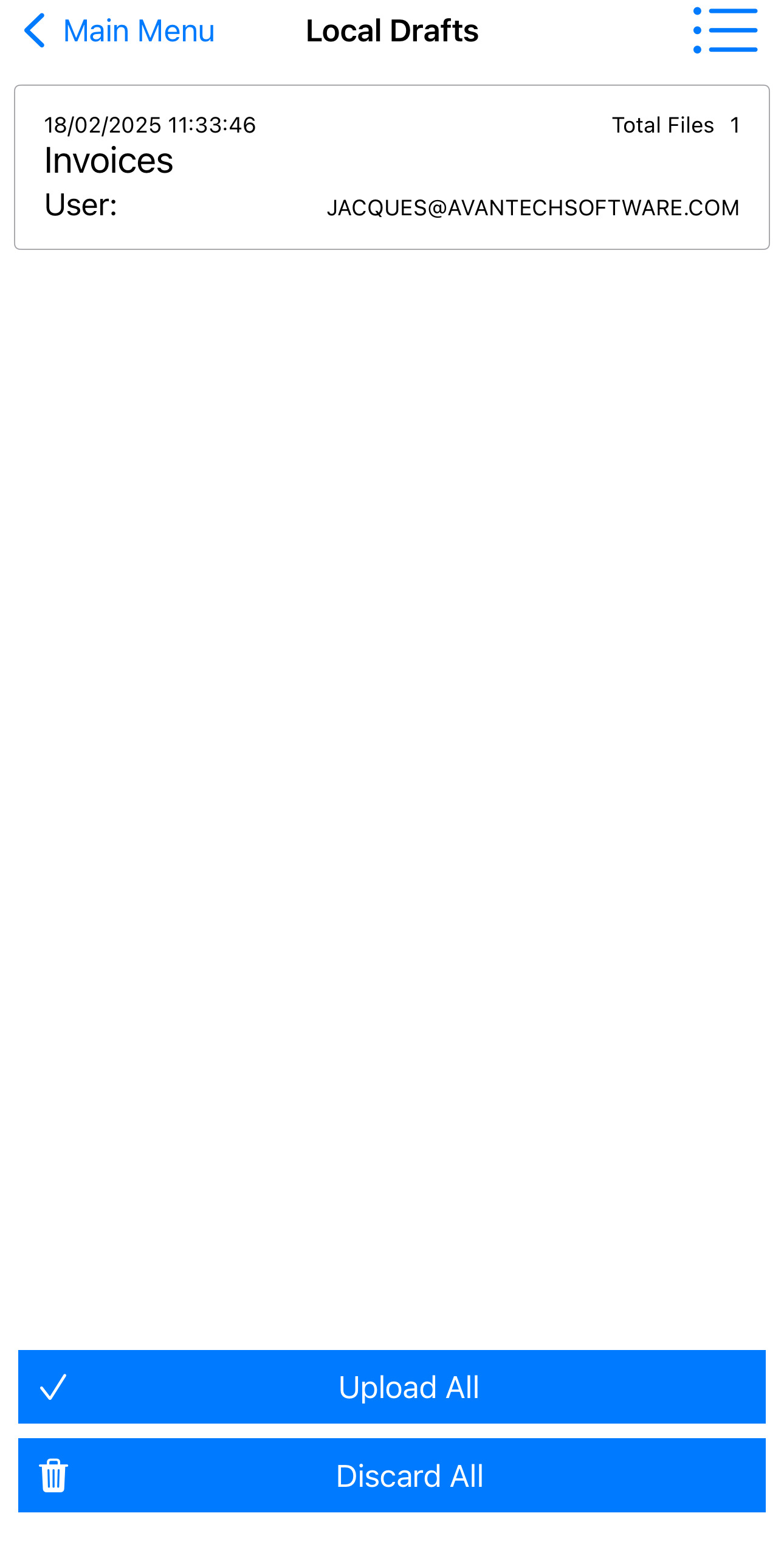 This feature allows the user to see documents that are currently being worked on and/or documents that have not yet been sent for upload.