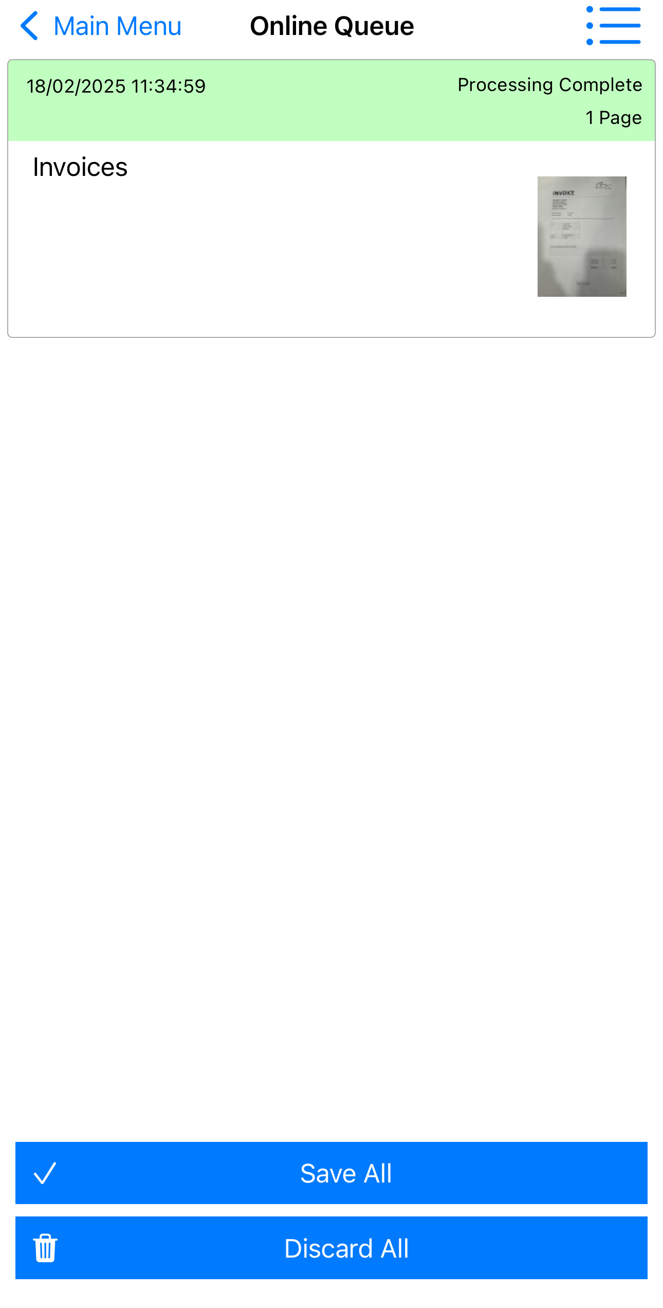 This feature allows the user to manage the processed documents that are queued to be uploaded to the online queue.