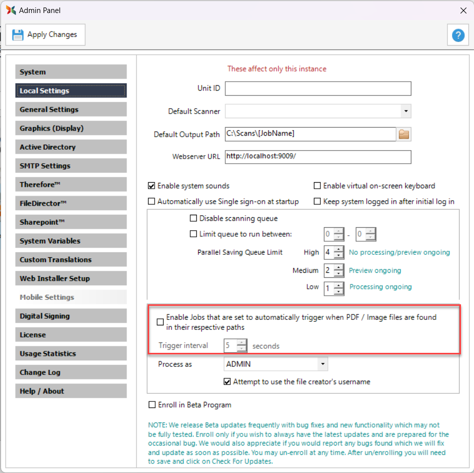 (Please note that this option should not be used by Scan2x Online tenants due to when saving in Scan2x Online, it does not have access to the users' local directories)
