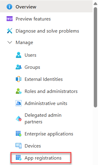 Locate the App Registrations tab from the left-hand panel and click on it.