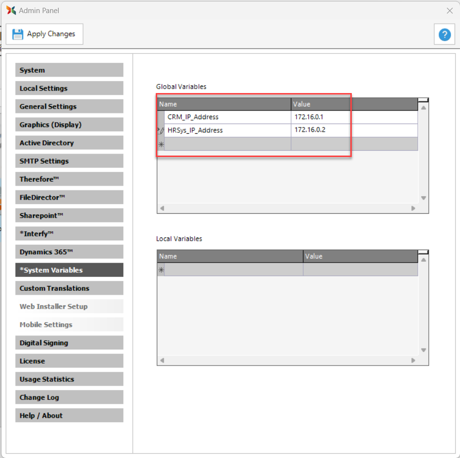 Once an IP address changes, you only need to change the global variable value and all job settings across the entire network will be updated automatically.